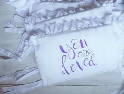 Комплект для новорожденного в кроватку.Бортики на три стороны высотой 35см и два валика,покрывало 80*100см,подушечка с наволочкой,простынь на резинке.Материал-сатин,наполнитель-синтепон.Ручная роспись устойчива к стирке.