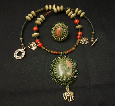Кулон и кольцо с унакитом. Стоимость кулона отдельно: 2200 Стоимость кольца отдельно: 800
