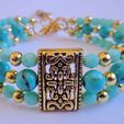 Комплект украшений из черного агата, турквенита, металла, акрила.