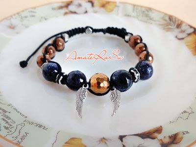 «Искры галактики» - смелость и шарм. Камни: авантюрин, гематит.Тёмно-синий - загадочный, притягательный, благородный цвет. Символизирует постоянство, преданность, совершенство и мир. Изумительный браслет, подчеркивающий Ваш стиль, маленькие блистающие искорки на Вашем запястье, серьги - игриво выглядывающие из-за локонов волос непременно вносят особый шарм даже в повседневный образ. Штучные изделия для Вас в наличии и на заказ vk.com/club_amaterasu