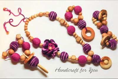 Комплект из можжевеловых бусин- слингобусы и грызунок на выбор