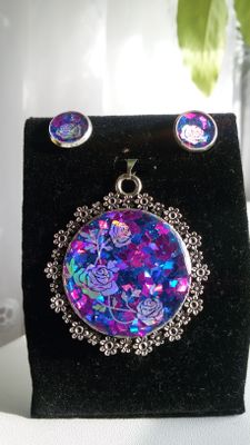 Изящный кулон и лаконичные пуссеты с эпоксидной смолой и глиттером. Дополнят любой образ