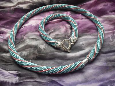 Комплект: ожерелье и браслет из стекляруса и бисера