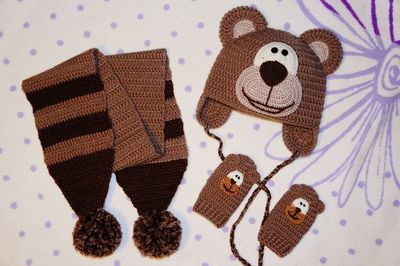 Комплект Мишка Связан из 100% хлопка нежнейший и красивый,В комплект входят шапка, шарф, варежки