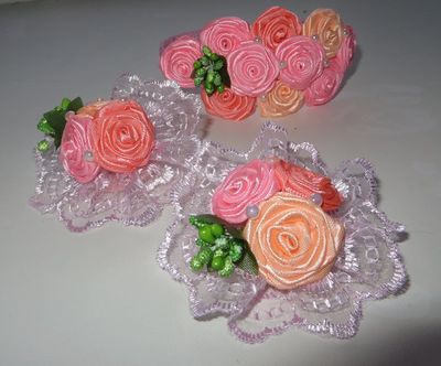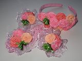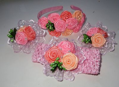 В комплекте ободок,две резинки и повязка.Можно приобрести отдельно ,ободок- 400,резинки- 240,повязка- 250.Малый комплект:повязка и резинки 450.Малый комплект 2 :ободок и резинки 600. Материал :атласные ленты, полубусины, кружево.