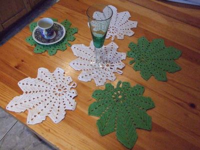 Сервировочные салфетки под чашку связаны из ниток "Пион". Размер салфеток 20х19 см.В наличии два комплекта: 6 штук белых и 6 штук зелёных.Можно скомплектовать смешанный набор:3 белых и 3 эеленых.Готовая работа.Оплата наличными при личной встрече,возможна отправка почтой при 100% - ой предоплаты.Тел.89164023191