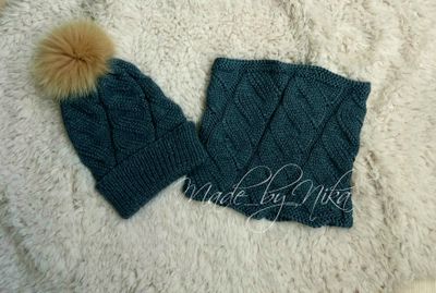 Комплект связан из очень качественной полушерсти,которая очень долго не теряет свой товарный вид. На ОГ 48-50 см Такой комплект очень актуален в этом сезоне. Выглядит стильно.В нем тепло и комфортно.