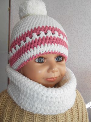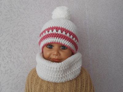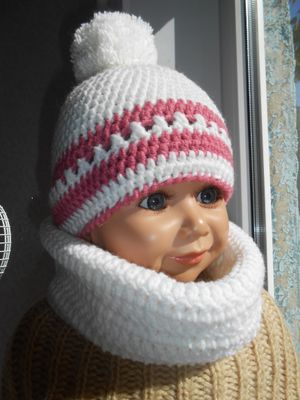 Комплект шапочка и снуд связан крючком из детской пряжи шерсть с акрилом. Шапочка Ог 48-52 см украшена бубоном. Снуд дл 52 см,шир 30 см.По Вашему желанию могу утеплить флисом(+500 руб)