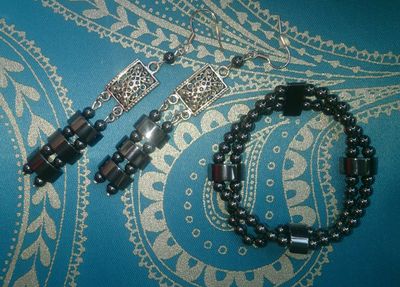 Комплект украшений из гематита(серьги и браслет)
