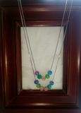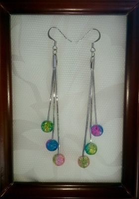 Яркий летний комплект подойдет к цветному платью или сарафану.Выполнен из цветного стекла кракле,серьги -цепочки длиной 9см на гипоаллергенных швензах из хирургической стали,по вашему желанию могу поменять на серебряные с небольшой доплатой и колье длиной 45см плюс удлинительная цепочка.Возможно изготовление браслета в комплект, цена комплекта с браслетом 600р