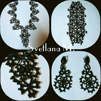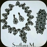 Комплект украшений выполнен в технике Анкарс с использованием ниток х/б, бисера, бусин. Комплект состоит из колье, браслета и сережек.