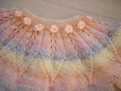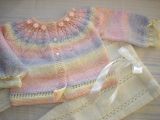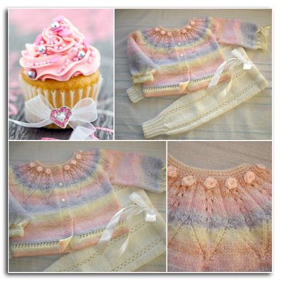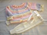 Нежный комплект - кофточка в пастельных тонах и белые штанишки) связан спицами из пряжи Super Excellence (Magic) - 49% шерсть 51% акрил. Размер 80-86. Комплект украшен атласными лентами и розочками. Ваша маленькая красавица будет рада такому наряду. Возможно исполнение по Вашим размерам.