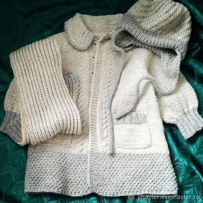 Комплект вязаный на девочку-шапка, шарфик и кардиган-чудесный подарок для девочки принцесски. Стильная шапочка, с закрывающими ушками от ветра и холода и Вязаный Кардиганчик в стиль к шапочке, с кармашками. Готовая работа Материалы: шерсть Размер: для новорожденных и на годик Могу повторить по Вашим размерам.