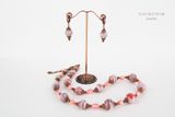 Комплект серьги и колье. Материал: стеклянные бусины лэмпворк, натуральный коралл, авторская литая медная фурнитура