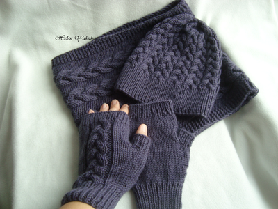Комплект "Шапка, длинные митенки и снуд в два оборота"