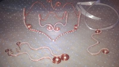 Серьги+диадема+браслет+кулон)) Медь, бусины, бисер, лента