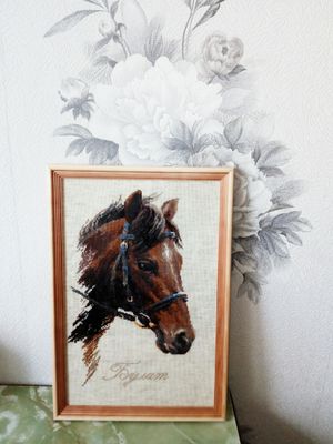 Картина вышита на канве шерстяными нитками,в рамке .размер 25*38