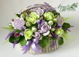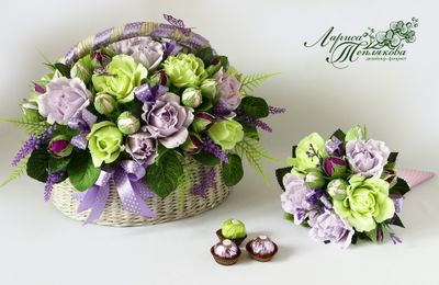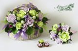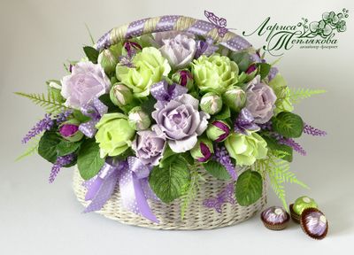 Этот нежный и утонченный букет придется по вкусу любой представительнице прекрасного пола! Такой подарок покорит её сердце, а сладкая начинка станет приятным сюрпризом! Букет выполнен в спокойных тонах и великолепно впишется в любой интерьер! Все конфеты легко достаются из цветочков ,а их извлечение не нарушает целостность цветка. Букет может радовать свою обладательницу сколько ей захочется! Описание товара 1) Конфеты шоколадные "ВУЛКАН" с цельным фундуком-17 шт," МАРСИАНКА ТРИ ШОКОЛАДА— 21 шт - ВСЕГО 38 КОНФЕТ 2) Корзина ручной работы(авторская работа) 3) Цветы ручной работы 4) Флористические аксессуары Размер: высота 30 см, диаметр: 35 см Изготовление под заказ. Срок изготовления – 5 дней. Букет передается покупателю в подарочной упаковке и подлежит пересылке в любой регион России.