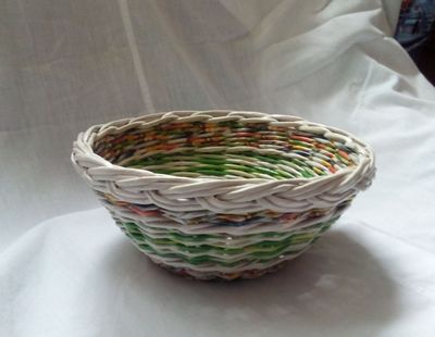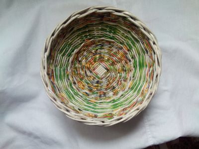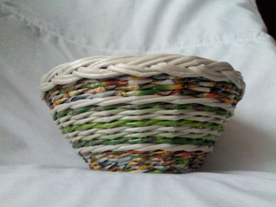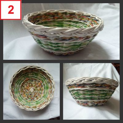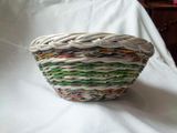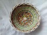 В наличии 2 штуки разной расцветки. Эта конфетница, выполненная в ярких красках, станет прекрасным украшением интерьера, создаст дополнительный уют и красоту вашего дома, хорошо будет смотреться и на повседневном, и на праздничном столе. Конфетница выполнена из бумажной лозы и покрыта не токсичным акриловым лаком на водной основе. Она легкая и практичная, по своей прочности не уступает изделиям из природных материалов, а лаковое покрытие делает ее влагостойкой. Может использоваться и как элемент декора, и по прямому назначению. Также может использоваться как хлебница или сухарница. Размеры: по внутреннему диаметру снизу - 10 см, сверху - 18,5 см, высота - 8 см. Материалы: бумага, клей ПВА, акриловый лак. Способ ухода: по мере необходимости протирать сухой или слегка увлажненной бытовой салфеткой из нетканого материала. Конфетница может быть изготовлена в любой цветовой гамме.