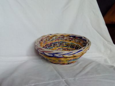 Эта конфетница, выполненная в ярких красках, станет прекрасным украшением интерьера, создаст дополнительный уют и красоту вашего дома, хорошо будет смотреться и на повседневном, и на праздничном столе. Конфетница выполнена из бумажной лозы и покрыта не токсичным акриловым лаком на водной основе. Она легкая и практичная, по своей прочности не уступает изделиям из природных материалов, а лаковое покрытие делает ее влагостойкой. Может использоваться и как элемент декора, и по прямому назначению. Также может использоваться как хлебница или сухарница. Размеры: по внутреннему диаметру снизу - 10 см, сверху - 16 см, высота - 6,5 см. Материалы: бумага, водная морилка, клей ПВА, акриловый лак. Способ ухода: по мере необходимости протирать сухой или слегка увлажненной бытовой салфеткой из нетканого материала. Конфетница может быть изготовлена в любой цветовой гамме.
