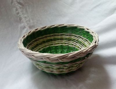 Эта конфетница, выполненная в ярких красках, станет прекрасным украшением интерьера, создаст дополнительный уют и красоту вашего дома, хорошо будет смотреться и на повседневном, и на праздничном столе. Конфетница выполнена из бумажной лозы и покрыта не токсичным акриловым лаком на водной основе. Она легкая и практичная, по своей прочности не уступает изделиям из природных материалов, а лаковое покрытие делает ее влагостойкой. Может использоваться и как элемент декора, и по прямому назначению. Также может использоваться как хлебница или сухарница. Размеры: по внутреннему диаметру снизу - 10 см, сверху - 18,5 см, высота - 8 см. Материалы: бумага, клей ПВА, акриловый лак. Способ ухода: по мере необходимости протирать сухой или слегка увлажненной бытовой салфеткой из нетканого материала. Конфетница может быть изготовлена в любой цветовой гамме.
