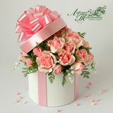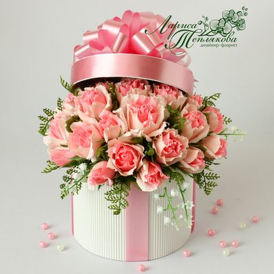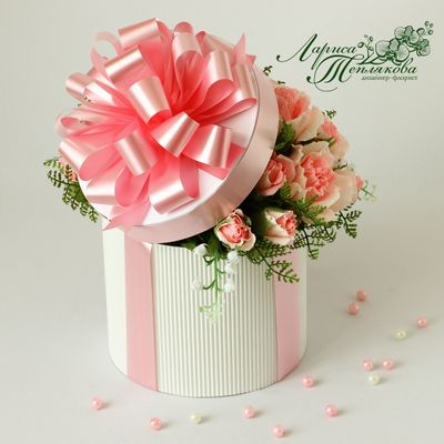 Красивая и очень нежная композиция выполненная в виде шляпной коробки покорит любую девушку! Такой подарок не останется незамеченным! Подарите своей любимой море восторга !!! Состав : Рафаэлло-13 шт Вишня в шоколаде -12 шт Коробка шляпная (авторская работа) Флористические аксессуары