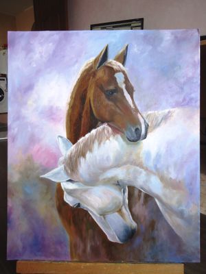 Картина маслом "Кони". Холст на картоне. Размер: 50х60. Картина украсит ваш интерьер или же станет отличным подарком на любой праздник! Дополнительно понадобится оформить картину в раму. Возможна отправка картины почтой.