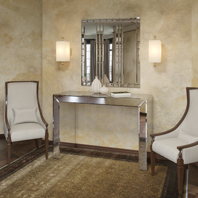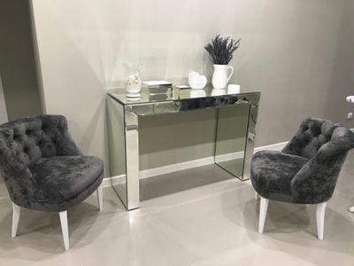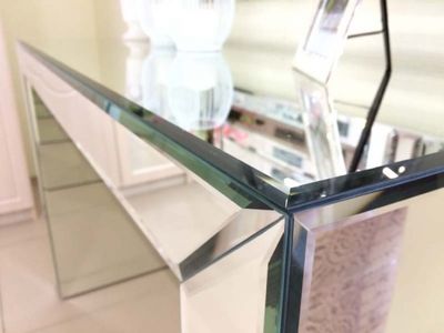 Консоль зеркальная материал основы: ЛДСП 16 мм (цвет белый) материал облицовки: зеркало 4 мм (серебро), обработка фацет 10 мм 470х1270х860 мм