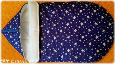Конверт зимний из хлопка , наполнитель - Альполюкс 300 , молния открывается в любом направлении : слева направо , справа налево и сверху вниз . На флисе.