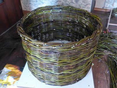 Плетеная корзина для дачи, без дна. Острые прутья внизу забиваются в землю, насыпается грунт и высаживается цветы. Все роскошная клумба корзина готова. Можно посадить сирень и другие кустарники. Украшайте свой участок и живите в красоте и уюте) диам 55 см