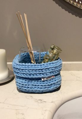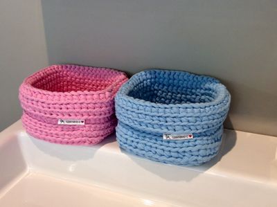Корзинка из хлопка ручной работы Вязанная крючком В наличии 2 - розовая и голубая Цена указана за 1шт. Можно стирать Размер: 180х180мм