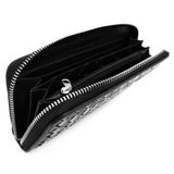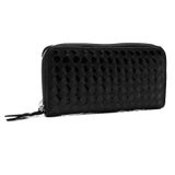 Женский кошелек (портмоне) из натуральной кожи. Закрывается на молнию. Модель отличает интересный «шахматный узор», сделанный с помощью переплетенных между собой кусочков кожи. Стильный, необычный дизайн подчеркнет женственность с одной стороны и подарит обладательнице загадочность и таинственность с другой. Внутри 3 отделения + 2 кармана для купюр, 8 кармашков для карточек, отделение для мелочи на молнии. Размер: 20 х 9 см Материал: натуральная кожа Цвет: черный