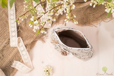 Размер 15*17 см. Лицевая сторона из льна, подкладка - хлопок. Декорирована цветком в стиле бохо.