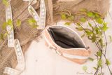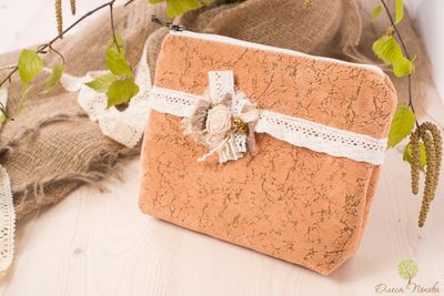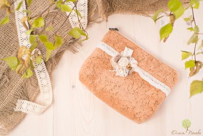 15*20, (20 по верхнему краю) косметичка на молнии из плотной ткани -велюр, подкладка - лен. Декорирована хлопковым кружевом и цветком в стиле бохо.