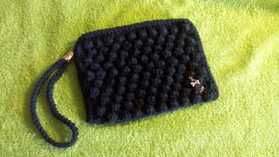 Стильная и очень красивая косметичка, можно носить и как клатч, и как вечернюю сумочку. Украшена брошкой и удобным ремешком. Закрывается на молнию.