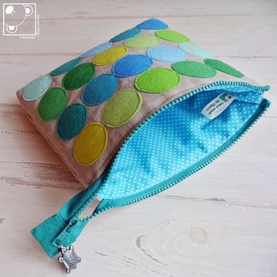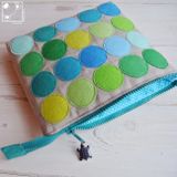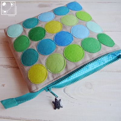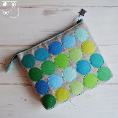 Размер: 23*22, ширина донышка 4 см. Весёлая косметичка с кружочками (размер кружочков - 4см). Лён+фетр. Черепашка из гематита на язычке молнии. Внутри любимые многими во все времена - горошки ).