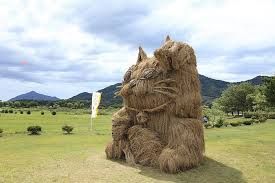 Кот из соломы. Высота 7 м, ширина 4 м. Время работы 3 недели!