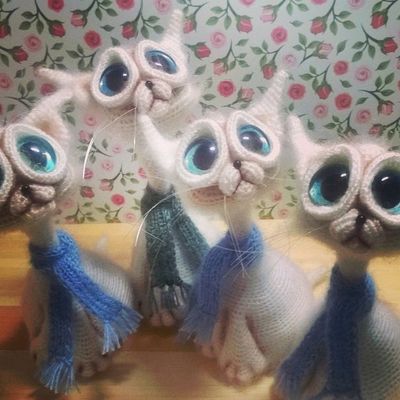 Кот выполнен крючком из мохера. Глаза стекло. Внутри проволочный каркас. Наполнитель холлофайбер. Тонировка художественная пастель. Игрушка выполнена по описанию Светланы Перцевой. Цена указана за 1 игрушку и с учетом стоимости доставки! Выполню по заказ. Размер: 21-23 см зависит от толщины пряжи
