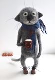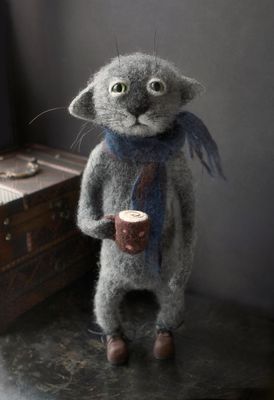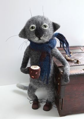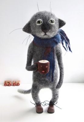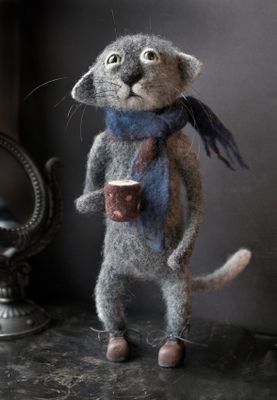 Работа представлена для примера. Декоративное интерьерное изделие ручной работы. Высота 32см. Кот изготовлен методом сухого валяния из 100% шерсти. Руки и ноги подвижны, на проволочном каркасе. Ботинки сделаны из полимерной глины. Устойчиво стоит на ровной поверхности. Эта очаровательная игрушка прекрасно украсит любой интерьер. Кот с удовольствием попьет с вами кофейку и поговорит за жизнь.