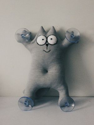 Кот из мультфильма "Кот Саймона". Высота 18 см. Выполнен из трикотажа. На лапках присоски - можно закрепить на стекло оконное или автомобильное.