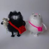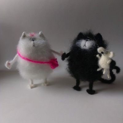 Котики связаны из мохера, внутри синтепон, в лапках и хвостике вставлена проволока, глазки приклеены. Размер 16-17 см, стоит за счет хвостика, но надо выставлять. Мышка 5-6 см