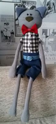 Кот Тимоша выполнен из флиса, очень мягонький, одежда не съемная, крепление лапок пуговичное, рост около 70 см, подарок для Вашего малыша.