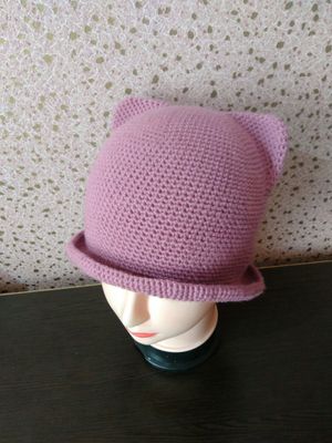 Очень модная шапочка с ушками,связана из полушерсти. Возможно исполнение в любом цвете и на любой размер.