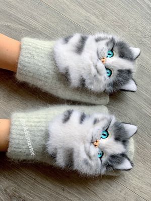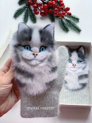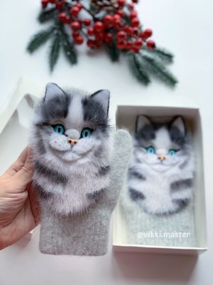 Варежки с полосатыми котиками. Декор на варежках выполнен в технике сухого валяния с добавлением искусственного меха. Глазки стеклянные, носик из полимерной глины. Размер универсальный - на женскую ручку. Сами варежки из ангоры- очень мягкие) Еще больше работ в моем профиле) Доставка по всему миру.