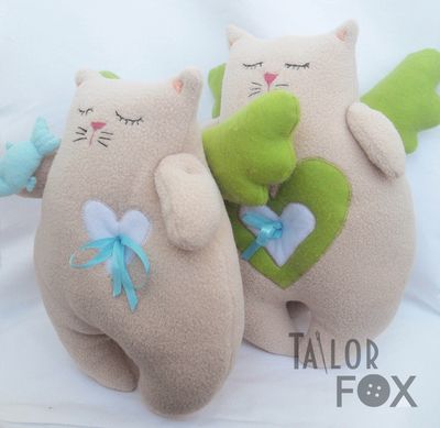 Милые коты-ангелочки принесут уют в Ваш дом. Выполненные из флиса, они очень мягкие и приятные на ощупь. Коты очень милые и заряжают спокойной позитивной энергией. Усатый ангел отлично впишется в Ваш интерьер, так как изготовить его можно в любом цвете. Цена указана за 2-х котиков. Возможен заказ и по одному.