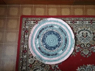Коврики связанные крючком из нового трикотажного материала. Диаметр 76 см