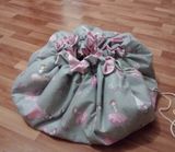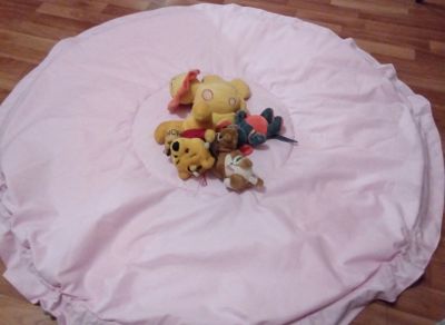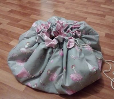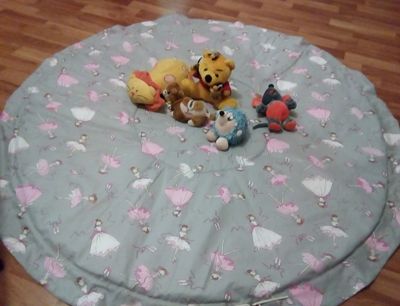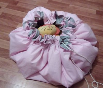 Коврик-мешок двухсторонний. Диаметр 120 см. Ткань: бязь,наполнитель: синтепон. Мягко,удобно,тепло. После игры собирается в мешок, игрушки можно оставить внутри, что позволяет сохранять порядок в комнате.