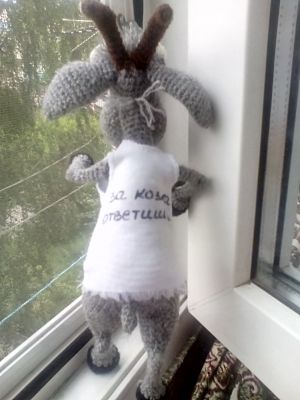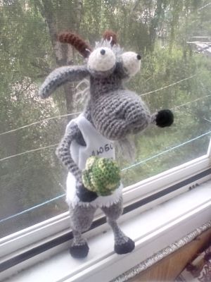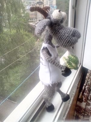 Вязанная каркасная игрушка. Пряжа - полушерсть, наполнитель - холофайбер, каркас - медная проволока 0,7
