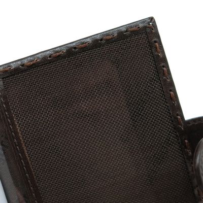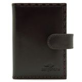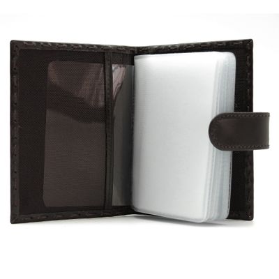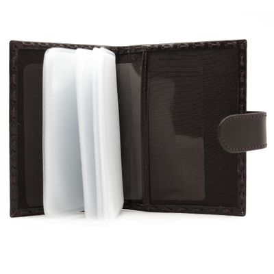 Кожаная визитница на 20 карточек. Закрывается на кнопку. Ручная работа. Эксклюзивный дизайн в сочетании с изящным плетением по контуру придает визитнице особый стиль. Размер: 7,5 х 10 см Материал: натуральная кожа Цвет: темно-коричневый