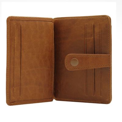 Стильная кожаная визитница, застегивается на кнопку. Ручная работа. Яркий, уникальный дизайн в сочетании с высоким уровнем комфорта в пользовании. Внутри 3 отделения для карточек, 7 удобных кармашков. Окошко-сеточка на задней стороне визитницы. Размер: 10 х 7,5 см Материал: натуральная кожа Цвет: светло-коричневый (Tan)